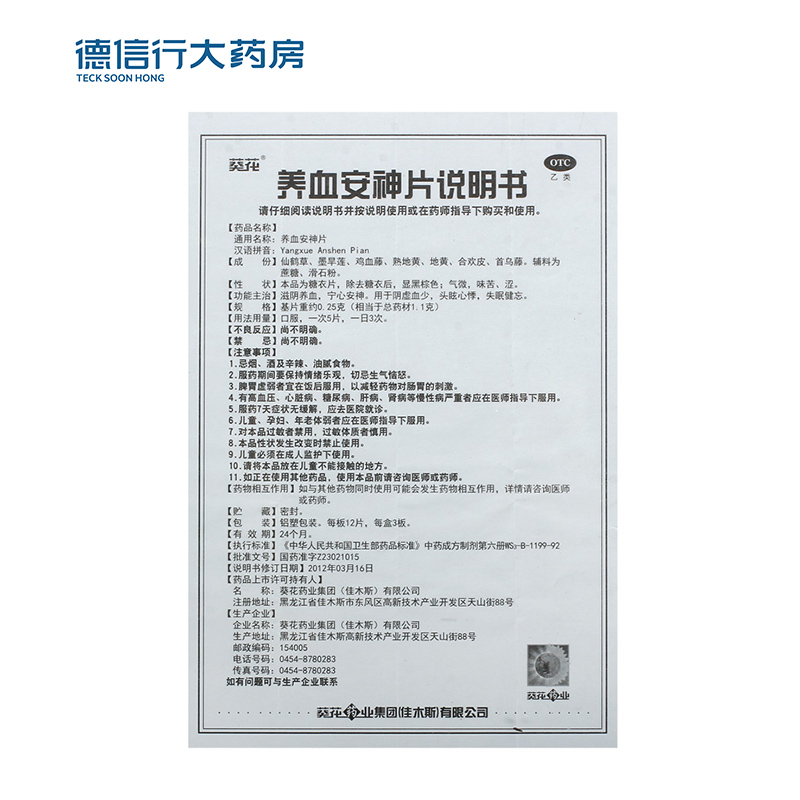 通用名:养血安神片